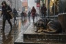 Сидит дворняга на дороге неподвижно,