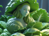 Одна девушка взяла в руки кочан. Вертит, смотрит, вероятно прикидывает в уме, что вкусного из неё приготовить.