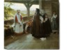На этой картине мы видим женщин, которые стоят на открытой веранде старинного деревянного терема.