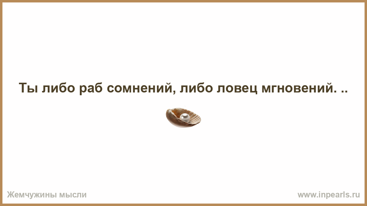 Ты либо раб сомнений, либо ловец мгновений. ..