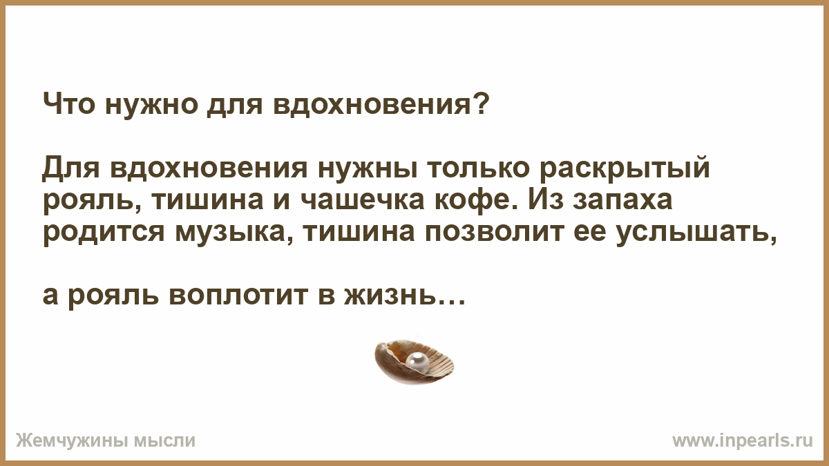 Для вдохновения нужны только раскрытый рояль, тишина и чашечка кофе. Из запаха родится музыка, тишина позволит ее услышать,