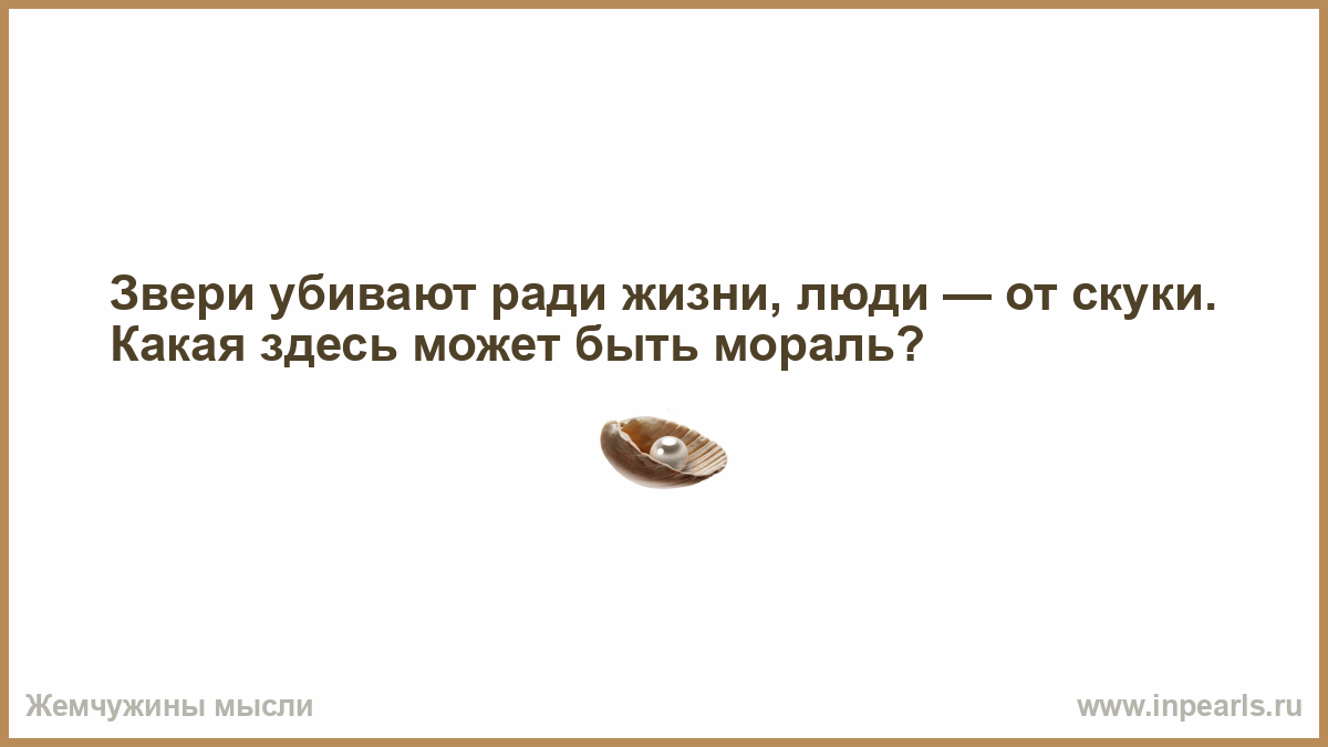 Звери убивают ради жизни, люди — от скуки. Какая здесь может быть мораль?
