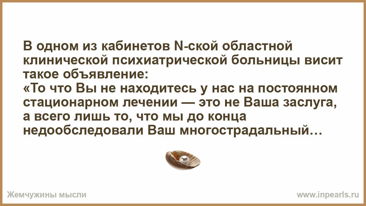 В одном из кабинетов N-ской областной клинической психиатрической больницы висит такое объявление: