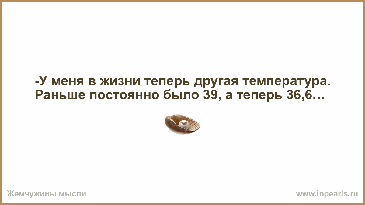 -У меня в жизни теперь другая температура. Раньше постоянно было 39, а теперь 36,6…