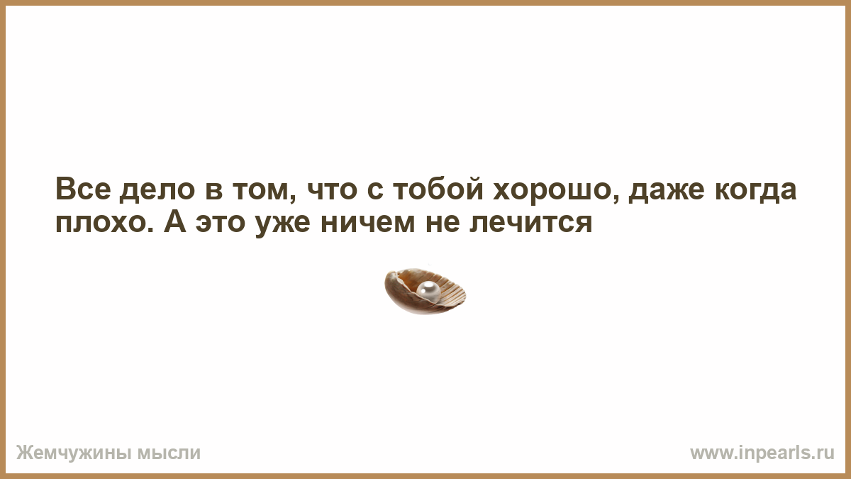 Все дело в том, что с тобой хорошо, даже когда плохо. А это уже ничем не лечится