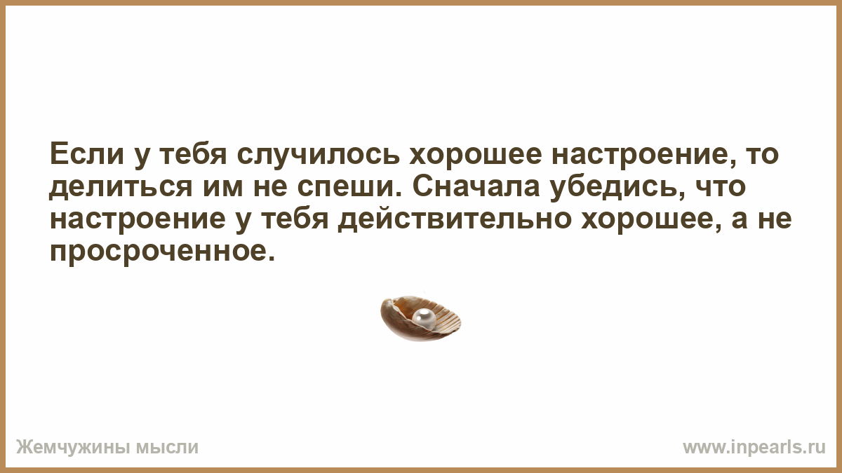 Если у тебя случилось хорошее настроение, то делиться им не спеши. Сначала убедись, что настроение у тебя действительно хорошее, а не просроченное.