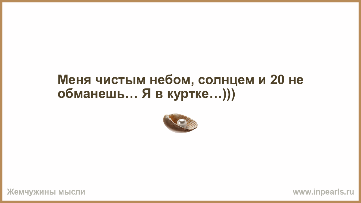 Меня чистым небом, солнцем и 20 не обманешь… Я в куртке…)))