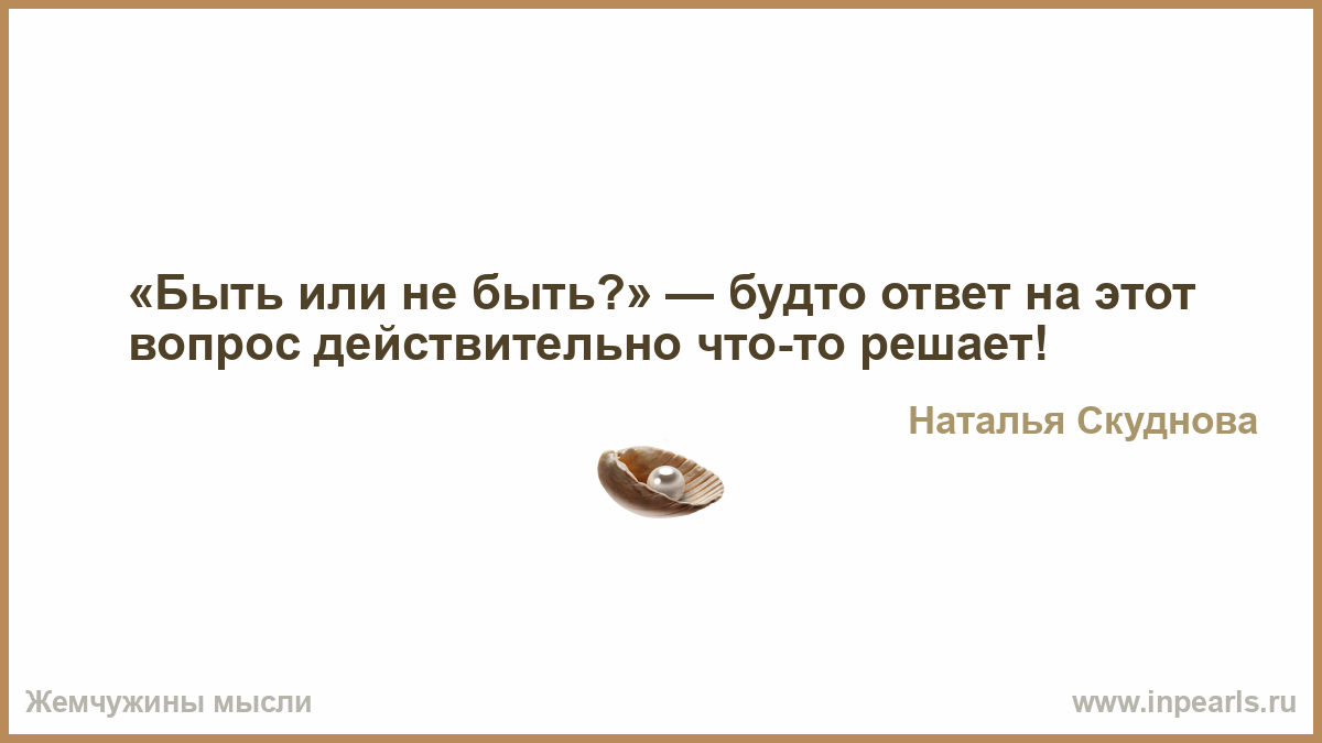 «Быть или не быть?» — будто ответ на этот вопрос действительно что-то решает!