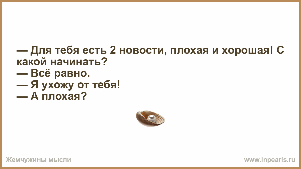 — Для тебя есть 2 новости, плохая и хорошая! С какой начинать?