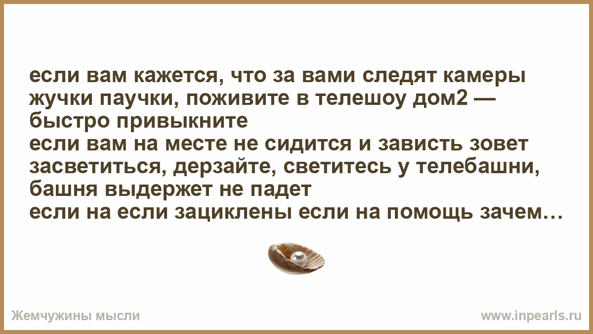 если вам кажется, что за вами следят камеры жучки паучки, поживите в телешоу дом2 — быстро привыкните
