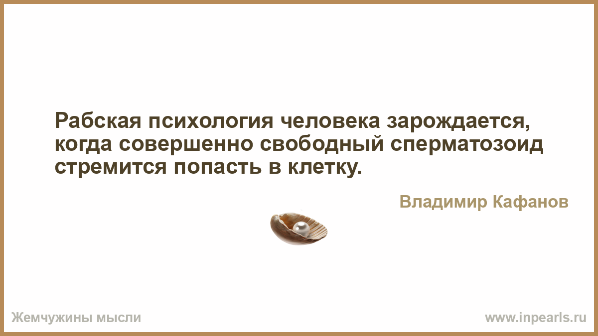 Рабская психология человека зарождается, когда совершенно свободный сперматозоид стремится попасть в клетку.