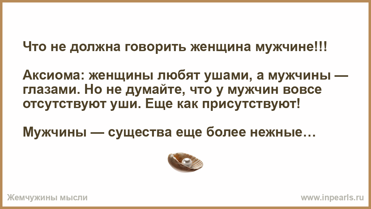 Аксиома: женщины любят ушами, а мужчины — глазами. Но не думайте, что у мужчин вовсе отсутствуют уши. Еще как присутствуют!