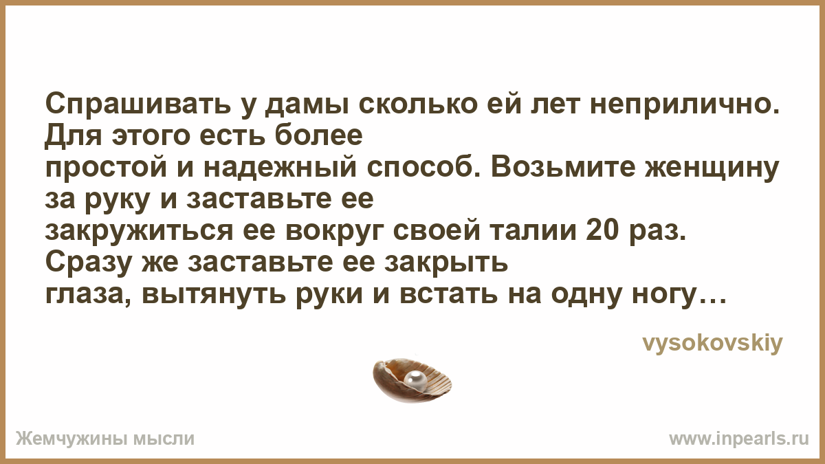 Спрашивать у дамы сколько ей лет неприлично. Для этого есть более