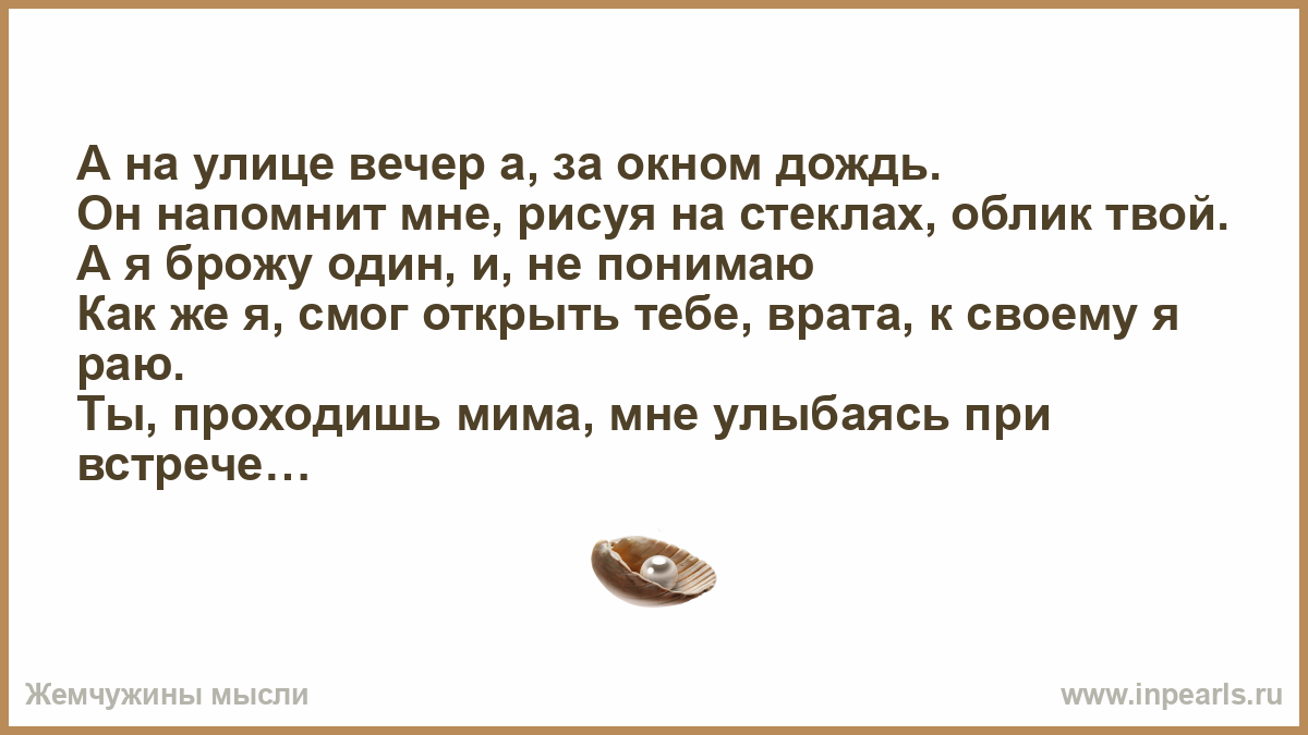Он напомнит мне, рисуя на стеклах, облик твой.