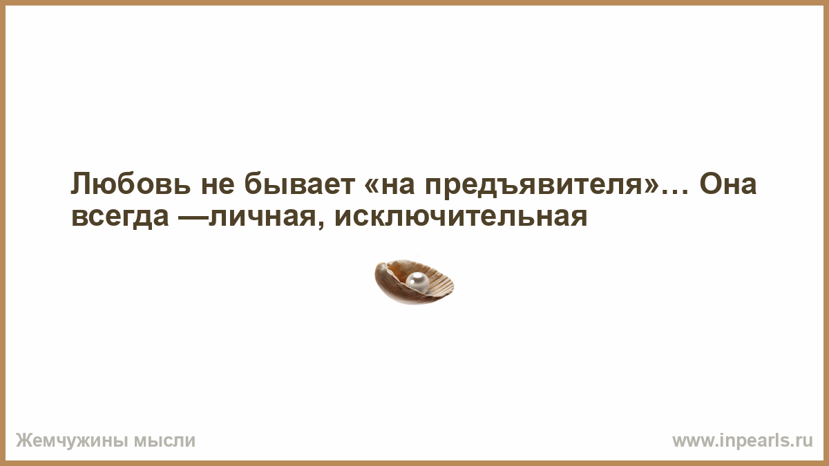 Любовь не бывает «на предъявителя»… Она всегда —личная, исключительная