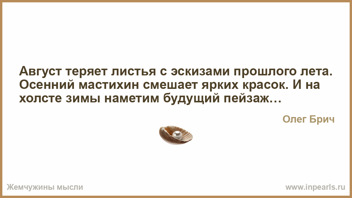 Август теряет листья с эскизами прошлого лета. Осенний мастихин смешает ярких красок. И на холсте зимы наметим будущий пейзаж…