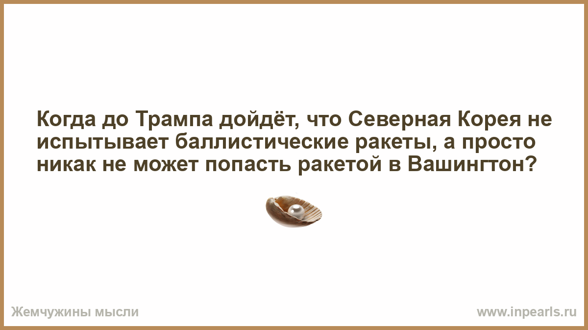 Когда до Трампа дойдёт, что Северная Корея не испытывает баллистические ракеты, а просто никак не может попасть ракетой в Вашингтон?