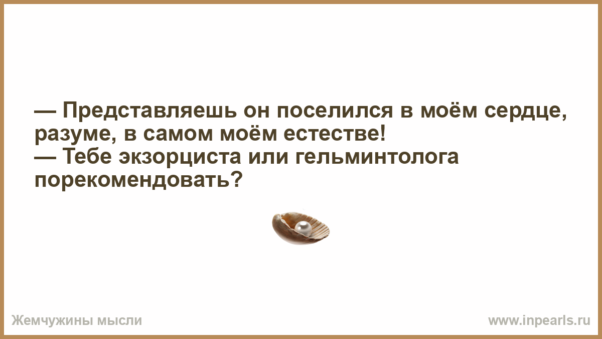 — Представляешь он поселился в моём сердце, разуме, в самом моём естестве!