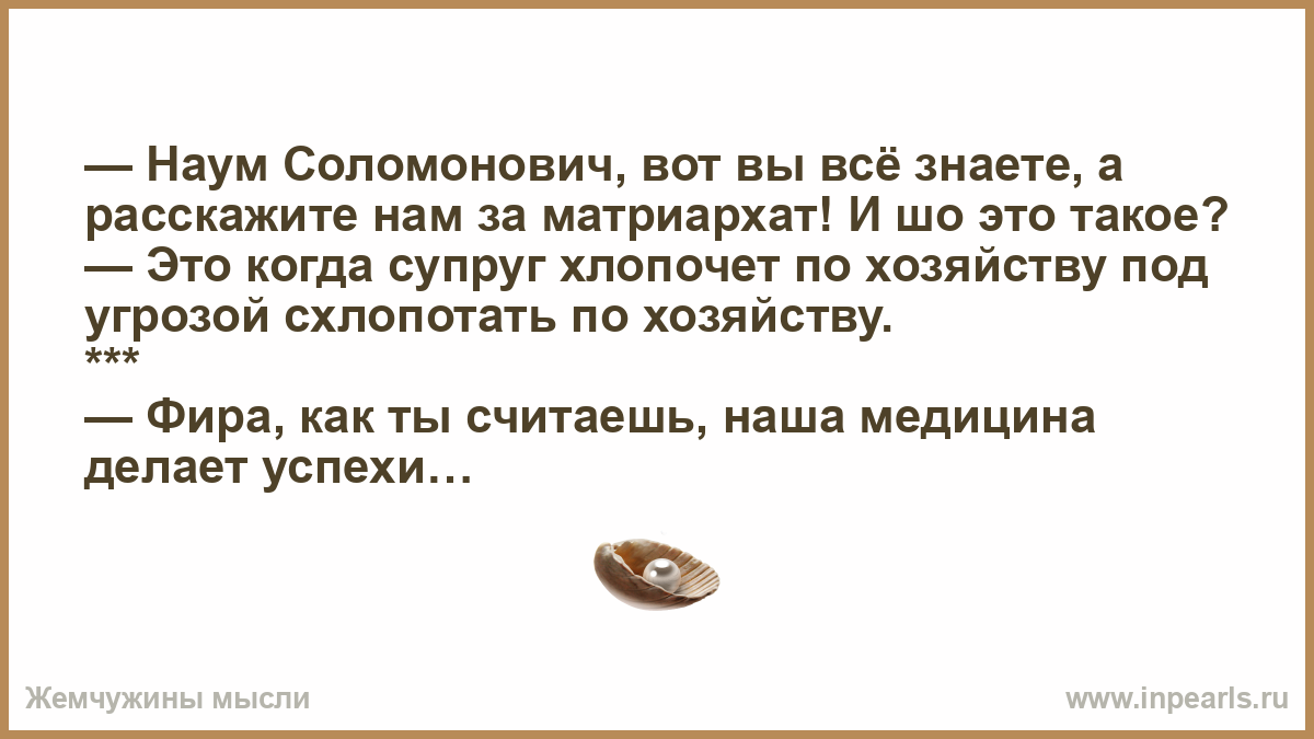 — Наум Соломонович, вот вы всё знаете, а расскажите нам за матриархат! И шо это такое?