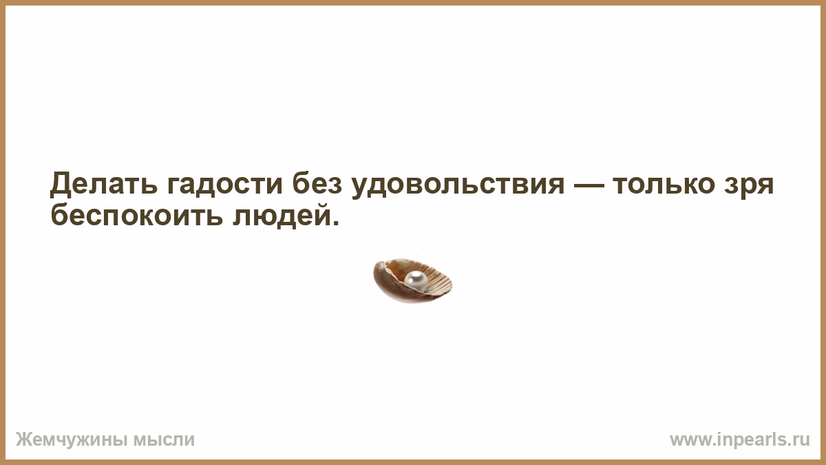 Делать гадости без удовольствия — только зря беспокоить людей.