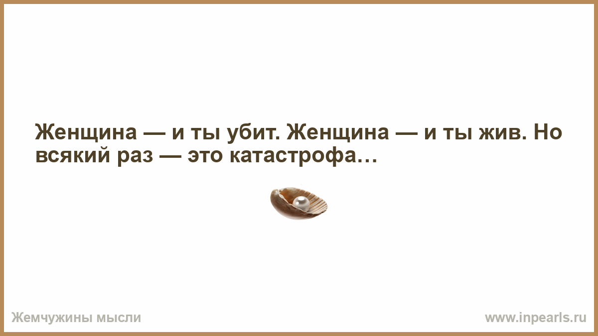 Женщина — и ты убит. Женщина — и ты жив. Но всякий раз — это катастрофа…