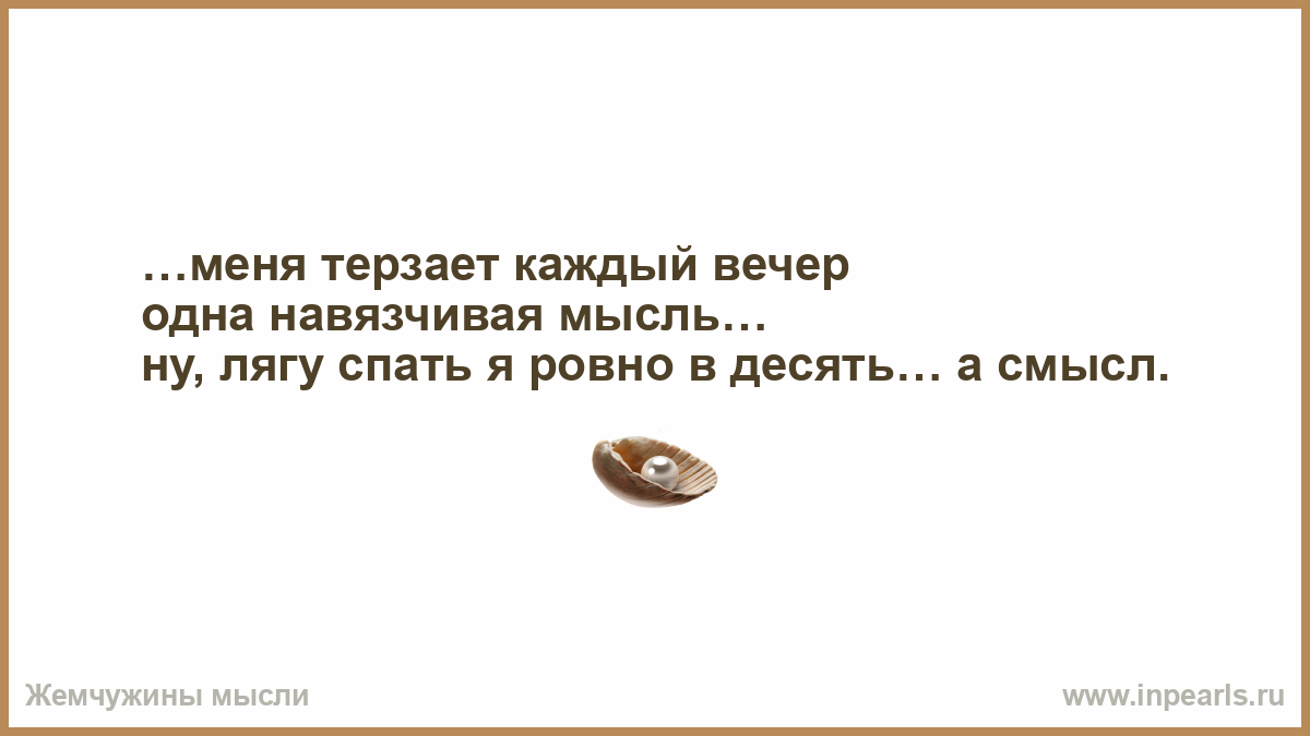 …меня терзает каждый вечер одна навязчивая мысль… ну, лягу спать я ровно в десять… а смысл.