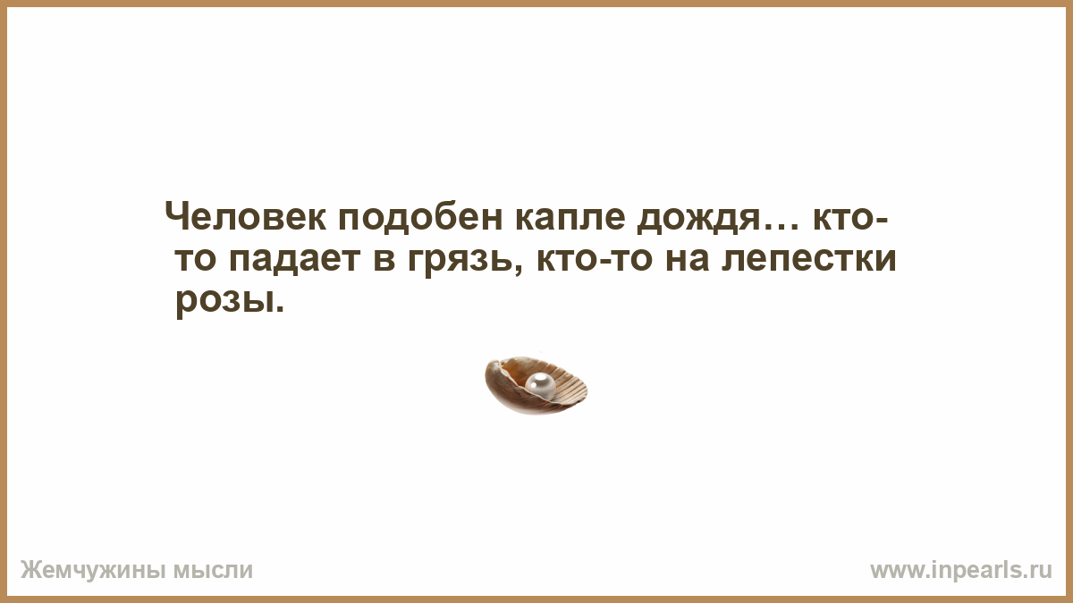 Человек подобен капле дождя… кто- то падает в грязь, кто-то на лепестки розы.