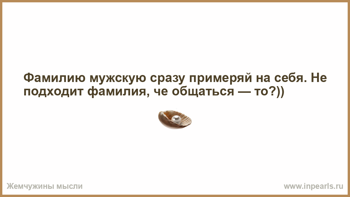 Фамилию мужскую сразу примеряй на себя. Не подходит фамилия, че общаться — то?))