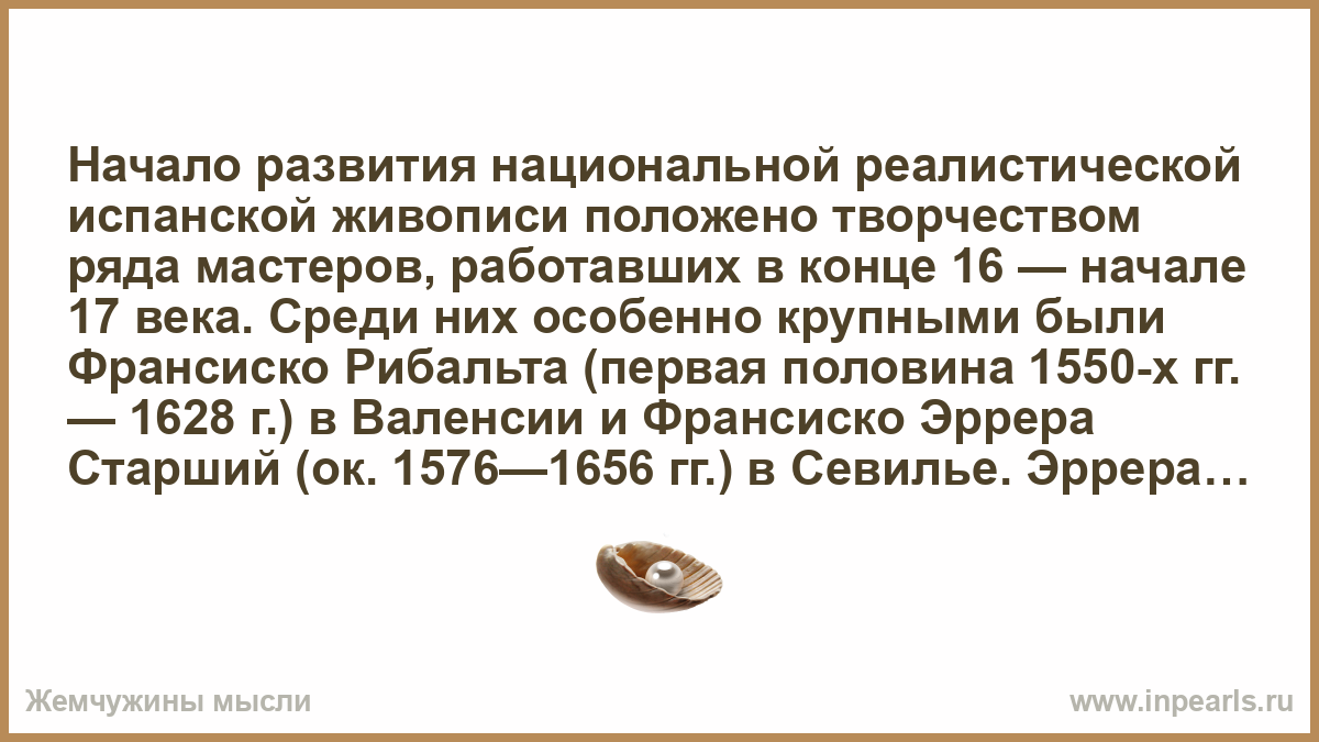 Начало развития национальной реалистической испанской живописи положено творчеством ряда мастеров, работавших в конце 16 — начале 17 века. Среди них особенно крупными были Франсиско Рибальта (первая половина 1550-х гг. — 1628 г.) в Валенсии и Франсиско Эррера Старший (ок. 1576—1656 гг.) в Севилье. Эррера сыграл очень важную роль в развитии испанской реалистической жанровой живописи.