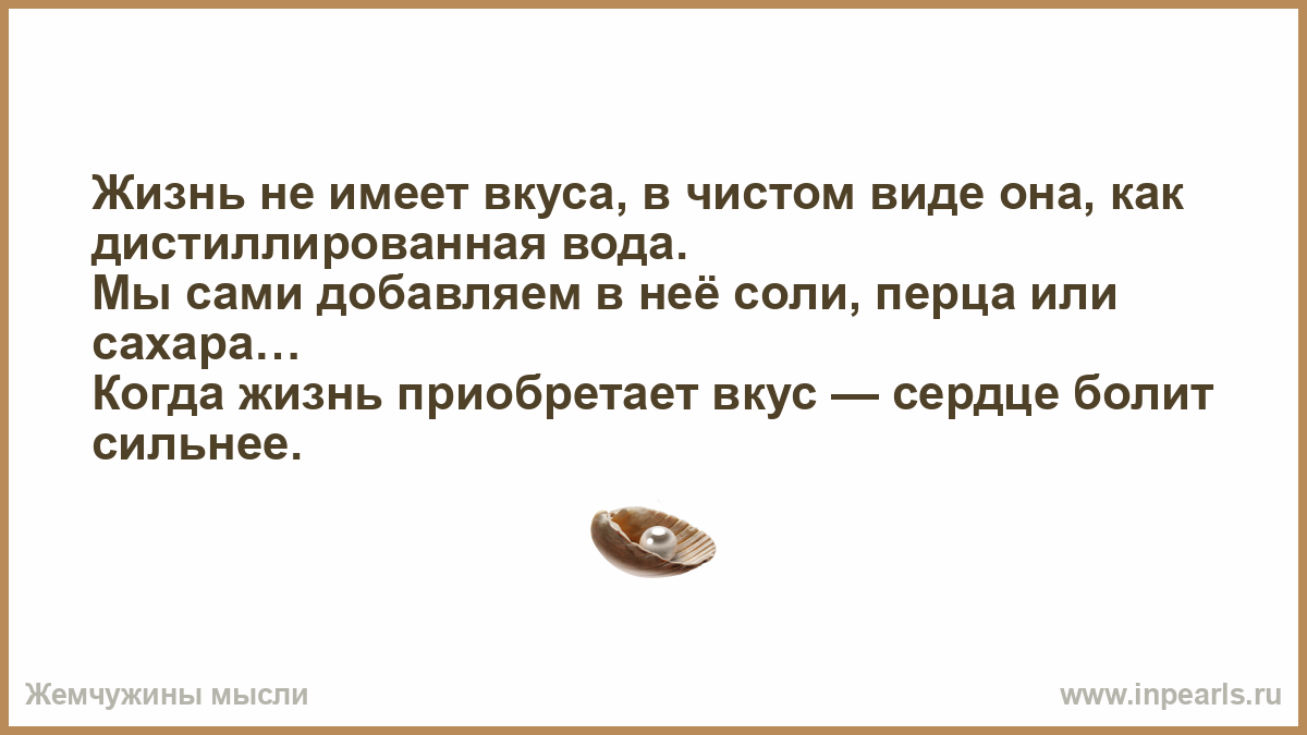 Жизнь не имеет вкуса, в чистом виде она, как дистиллированная вода.