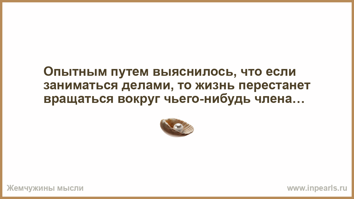 Опытным путем выяснилось, что если заниматься делами, то жизнь перестанет вращаться вокруг чьего-нибудь члена…