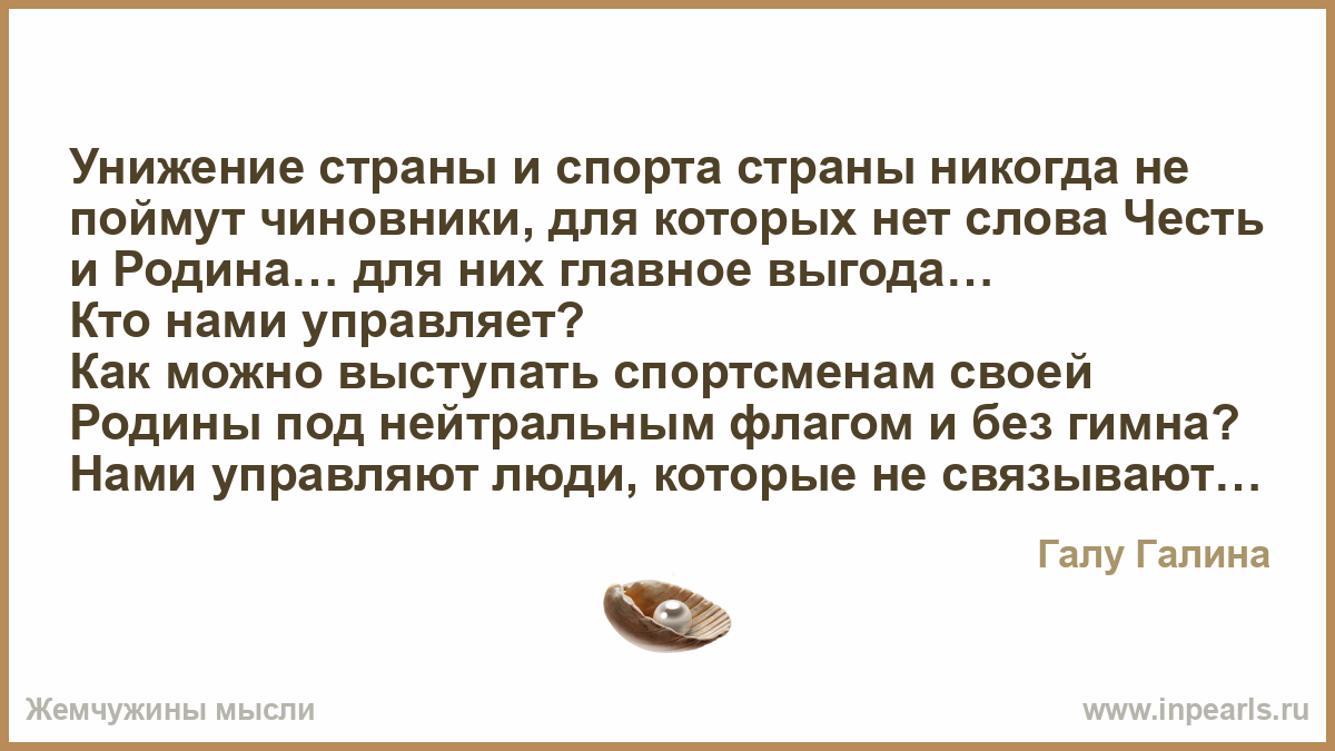 Унижение страны и спорта страны никогда не поймут чиновники, для которых нет слова Честь и Родина… для них главное выгода…