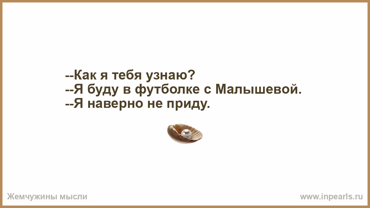 --Как я тебя узнаю? --Я буду в футболке с Малышевой. --Я наверно не приду.