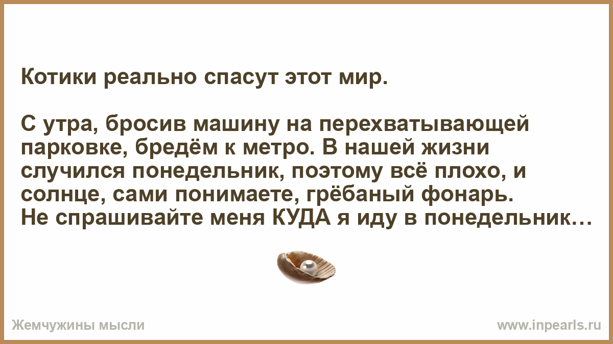 Но кому нужно это «спасибо»? Все ржут, радуются, улыбаются друг дружке. И дело уже не в котике. Мы в этот понедельник вдруг вспомнили, что мы — люди. Просто люди. Человеки, мать нашу… Хорошие и дружные в том, что касается хотя бы котиков.