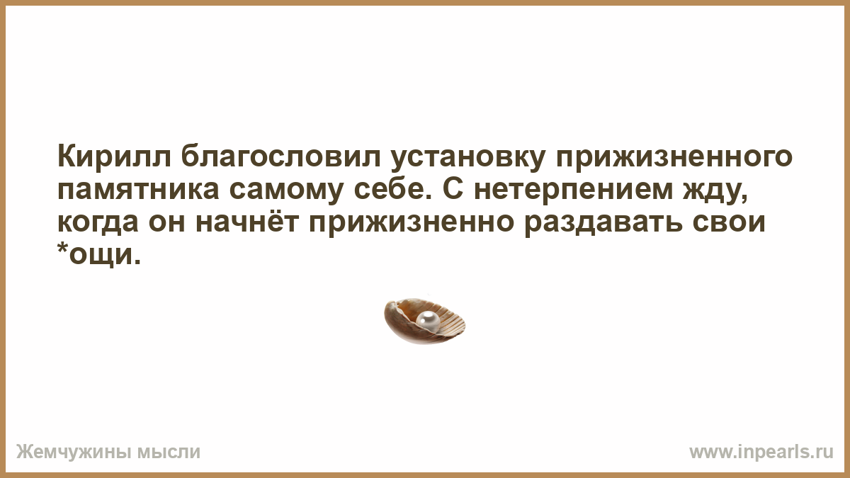 Кирилл благословил установку прижизненного памятника самому себе. С нетерпением жду, когда он начнёт прижизненно раздавать свои *ощи.
