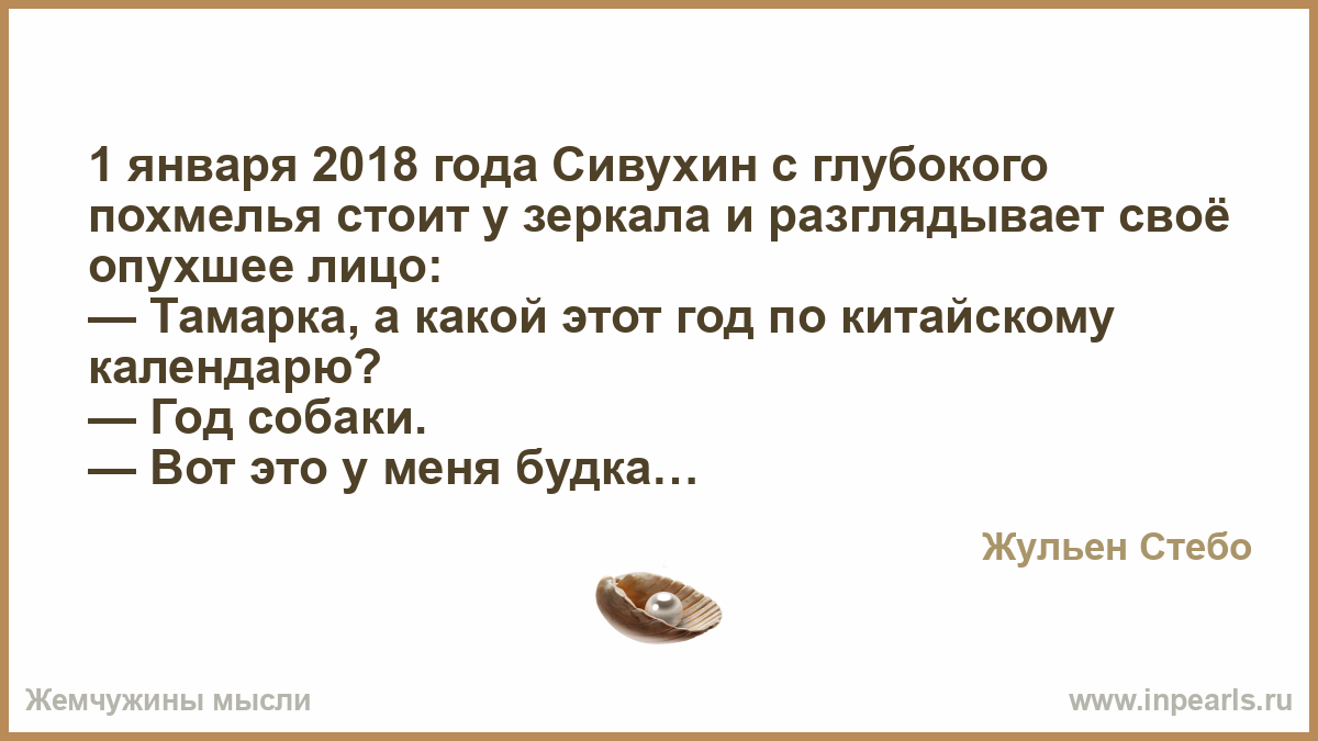 1 января 2018 года Сивухин с глубокого похмелья стоит у зеркала и разглядывает своё опухшее лицо:
