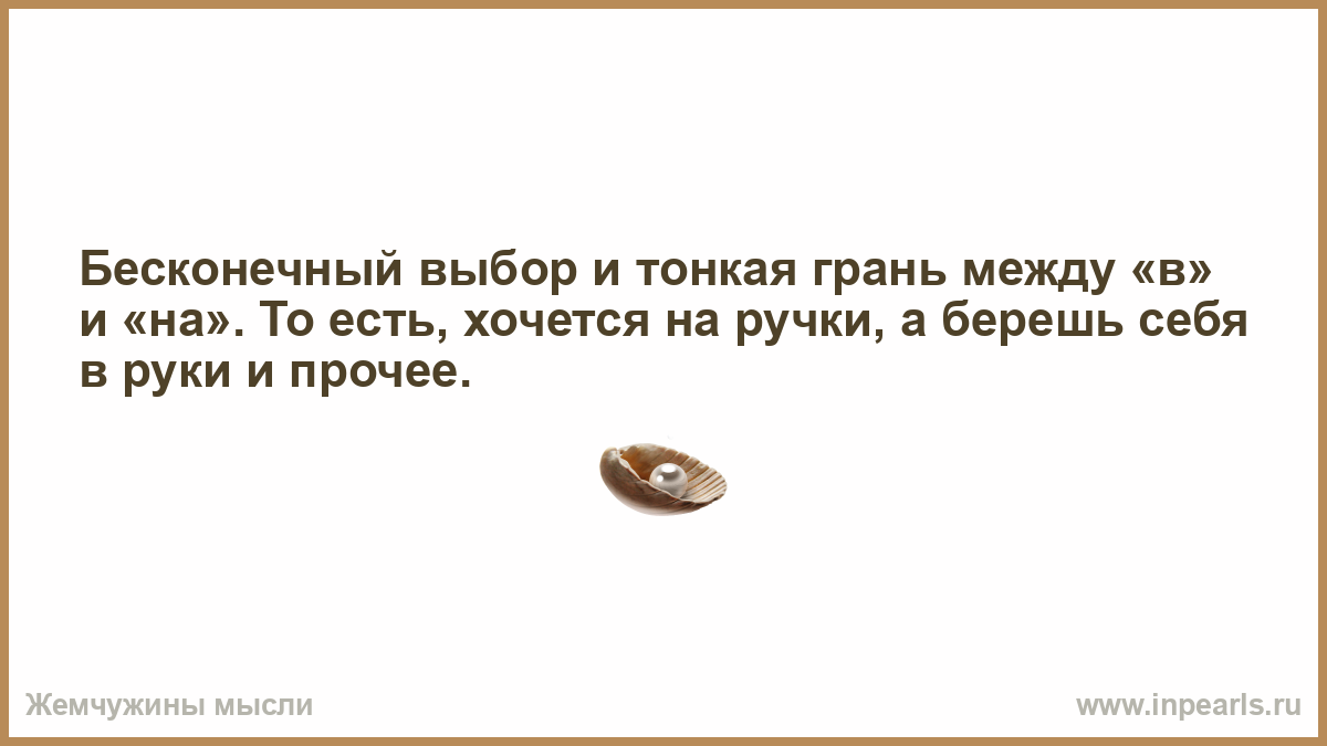 Бесконечный выбор и тонкая грань между «в» и «на». То есть, хочется на ручки, а берешь себя в руки и прочее.