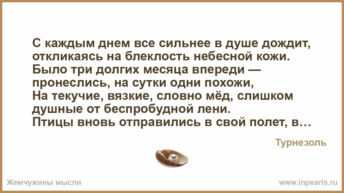 Вместе с ним — загар на твоих плечах (впрочем, нет — и откуда ему бы взяться? -