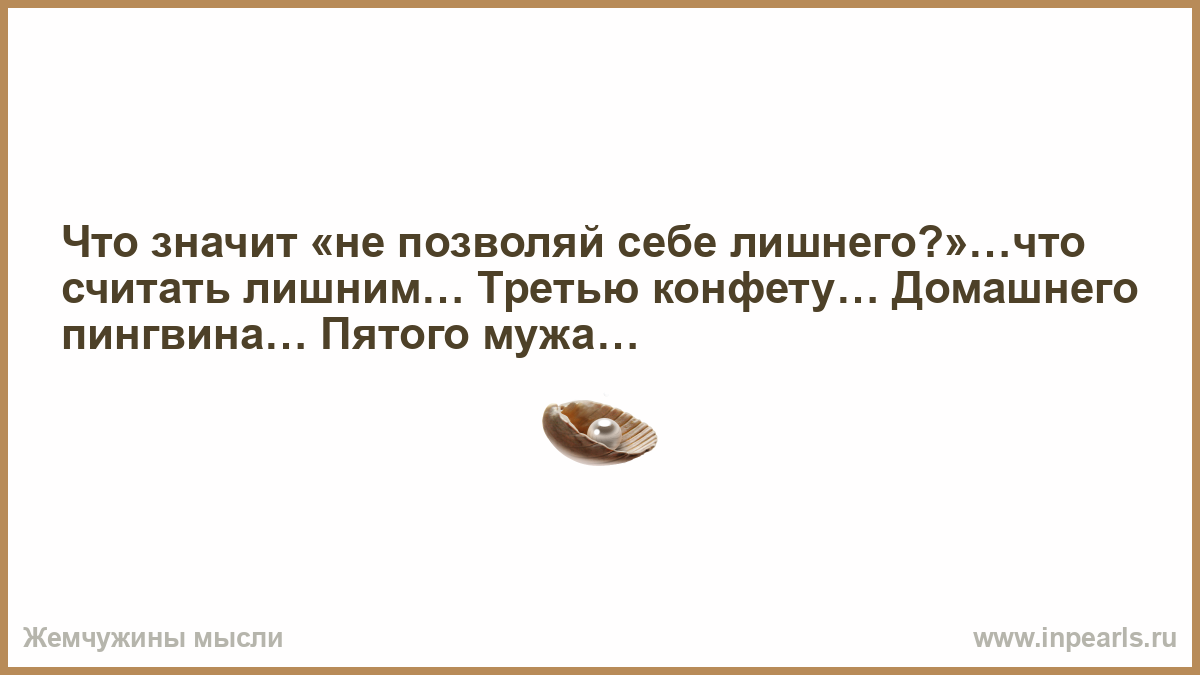 Что значит «не позволяй себе лишнего?»…что считать лишним… Третью конфету… Домашнего пингвина… Пятого мужа…