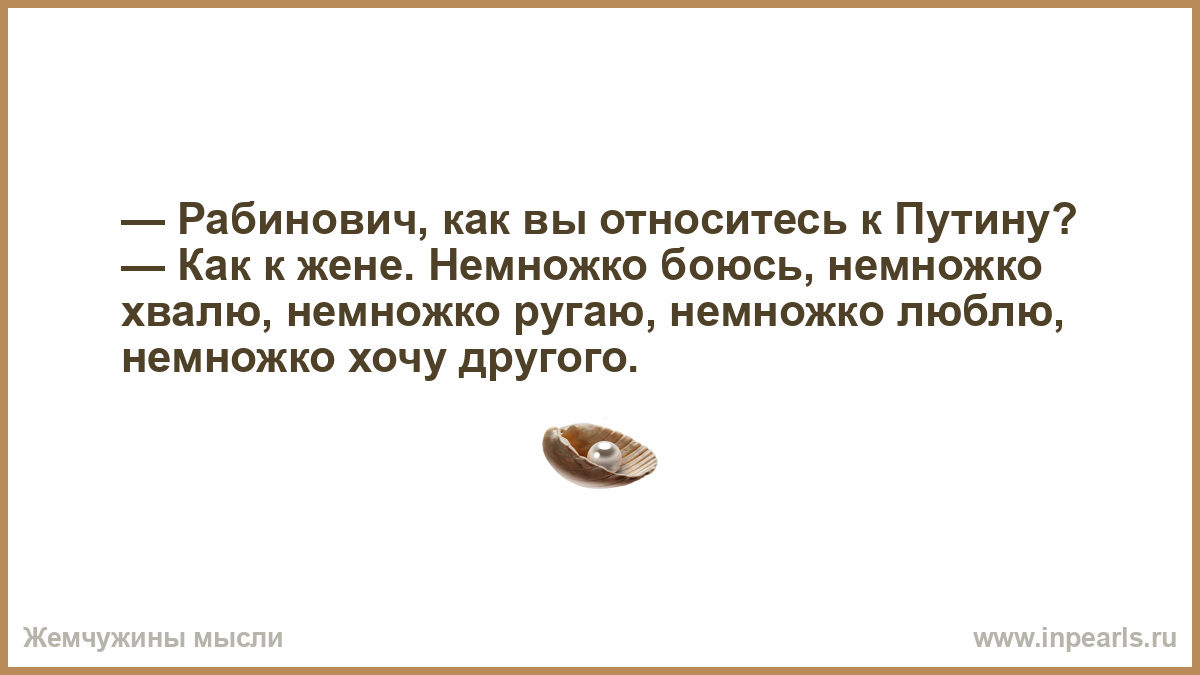 — Как к жене. Немножко боюсь, немножко хвалю, немножко ругаю, немножко люблю, немножко хочу другого.