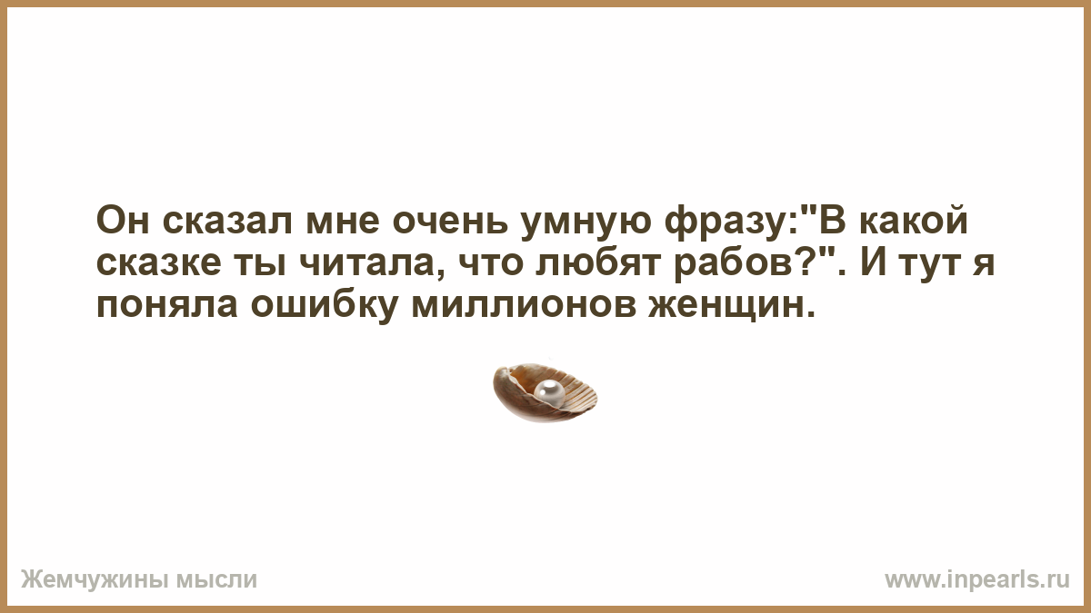 Он сказал мне очень умную фразу:"В какой сказке ты читала, что любят рабов?". И тут я поняла ошибку миллионов женщин.