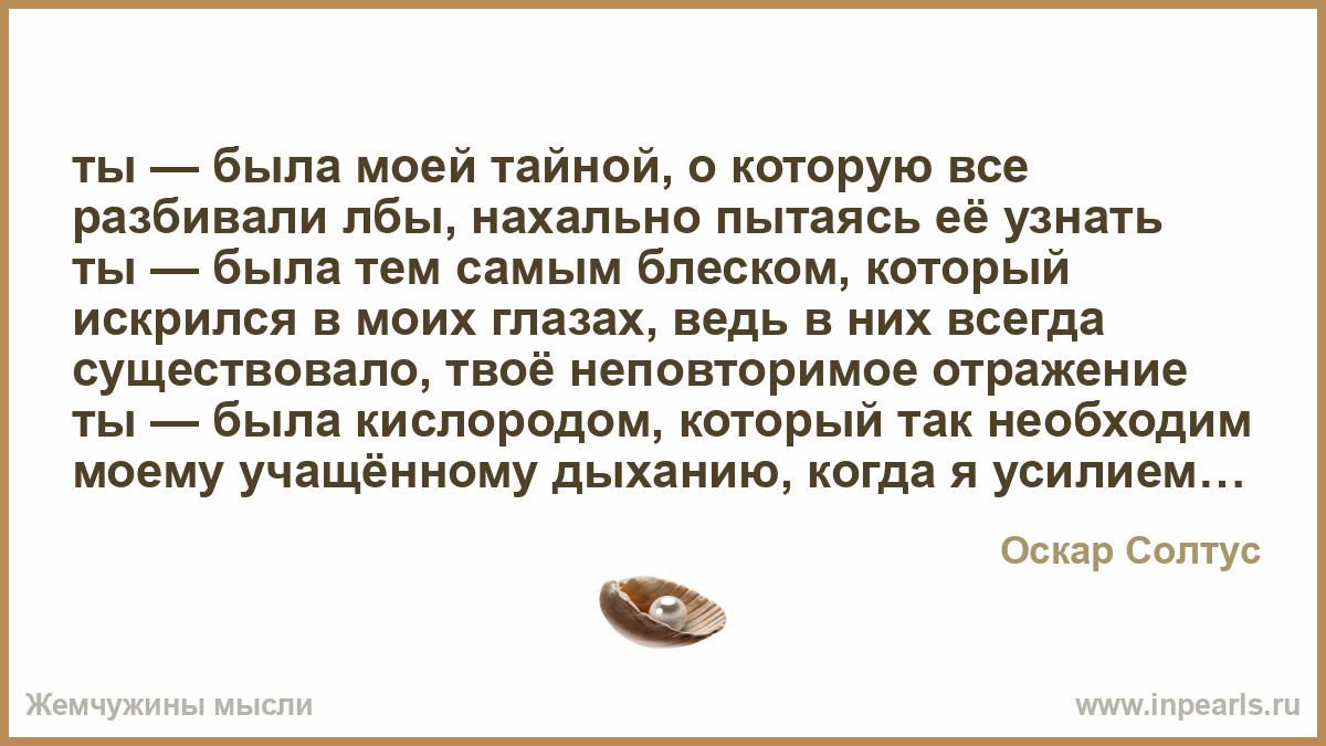 ты — была моей тайной, о которую все разбивали лбы, нахально пытаясь её узнать