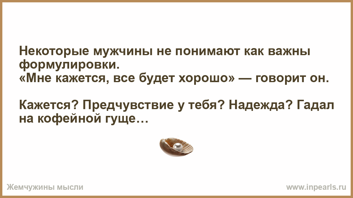 Кажется? Предчувствие у тебя? Надежда? Гадал на кофейной гуще?
