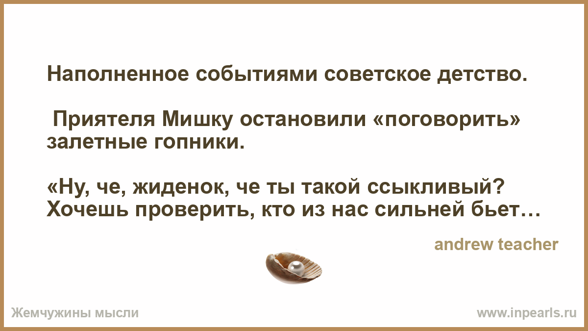 «Ну, че, жиденок, че ты такой ссыкливый? Хочешь проверить, кто из нас сильней бьет?»