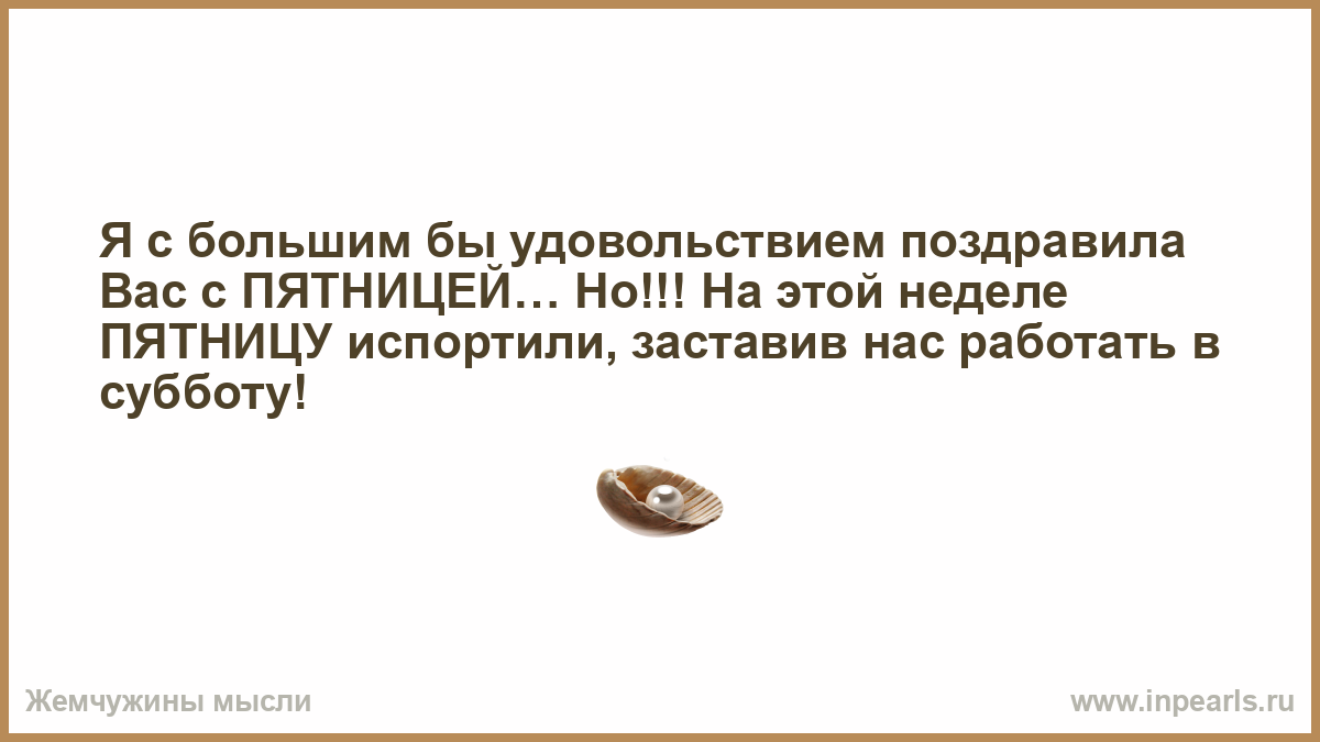 Я с большим бы удовольствием поздравила Вас с ПЯТНИЦЕЙ… Но!!! На этой неделе ПЯТНИЦУ испортили, заставив нас работать в субботу!