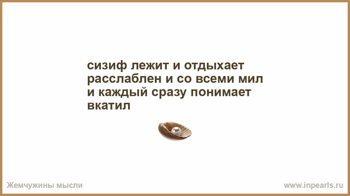 сизиф лежит и отдыхает расслаблен и со всеми мил и каждый сразу понимает вкатил