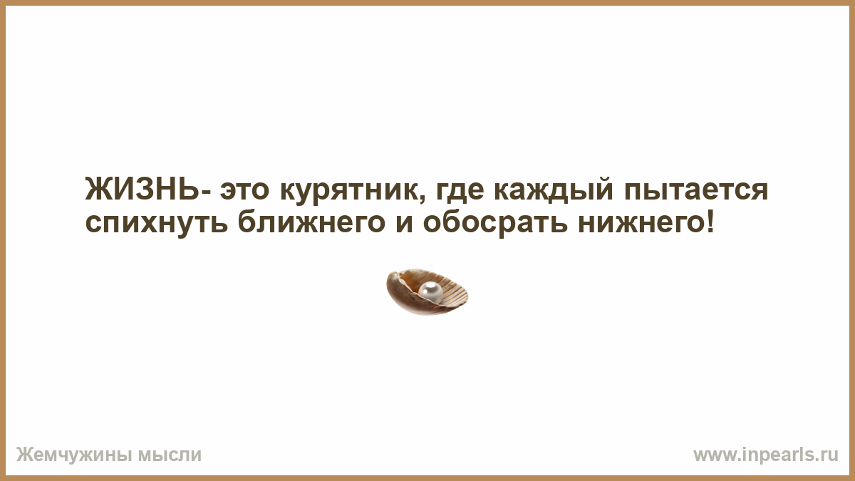 ЖИЗНЬ- это курятник, где каждый пытается спихнуть ближнего и обосрать нижнего!