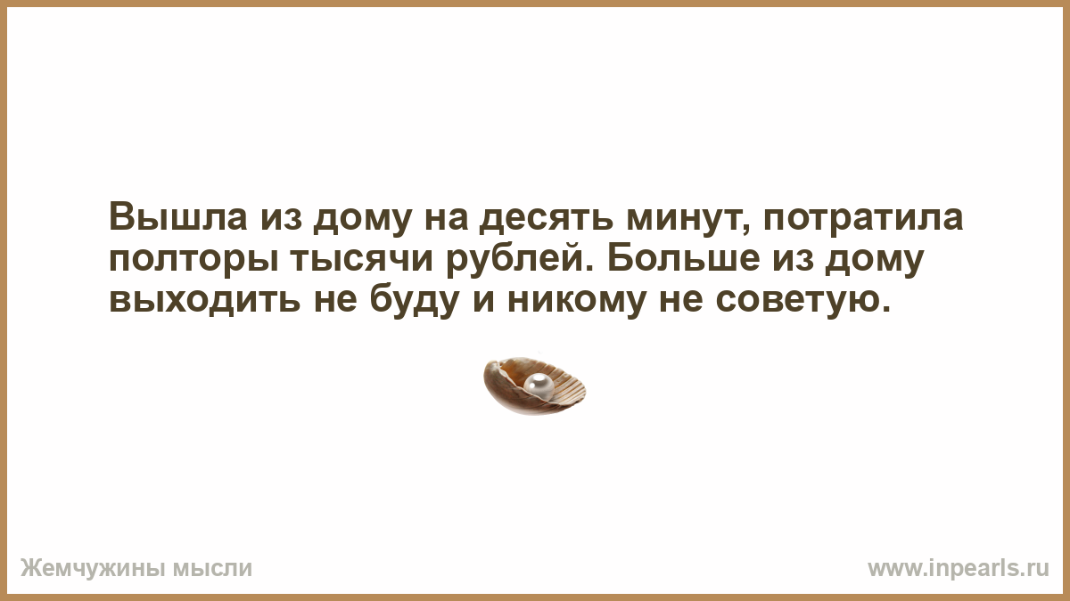 Вышла из дому на десять минут, потратила полторы тысячи рублей. Больше из дому выходить не буду и никому не советую.
