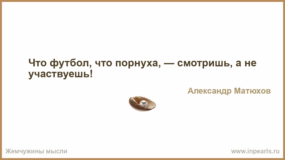 Что футбол, что порнуха, — смотришь, а не участвуешь!