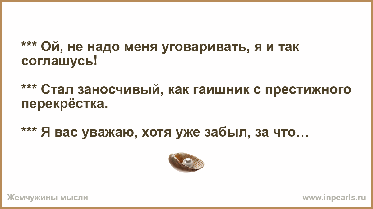 *** Ой, не надо меня уговаривать, я и так соглашусь!